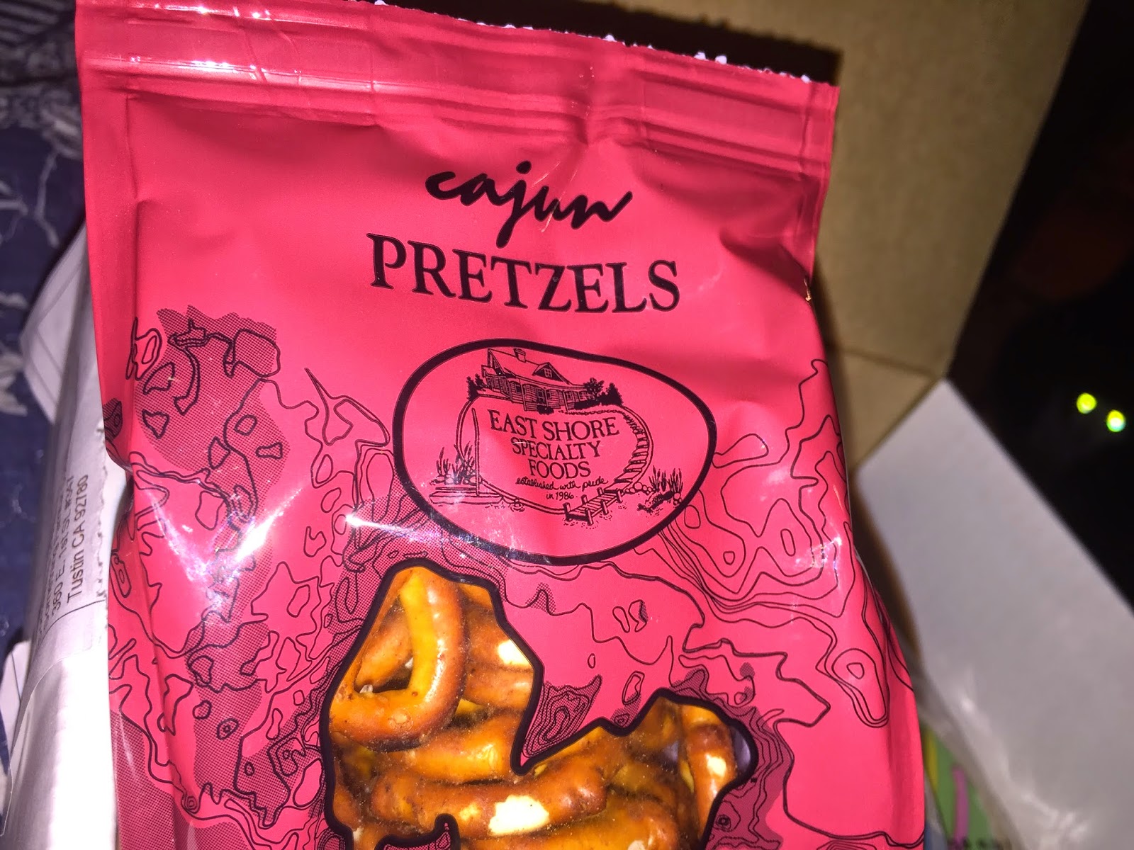 We were both so excited about the Cajun pretzels, but alas, they have Worcestershire sauce on them and that includes anchovies so my husband took them to work to give to someone.